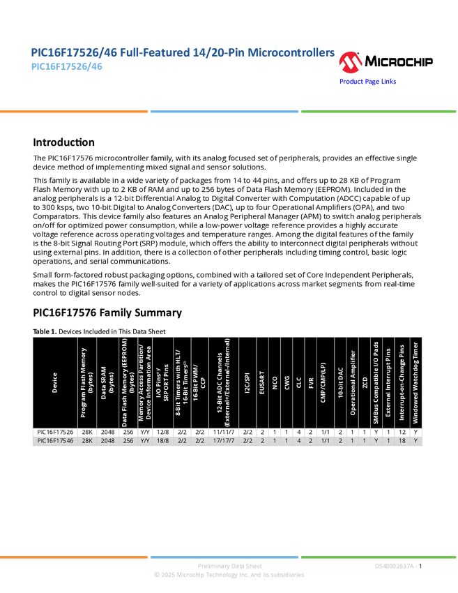 PIC16F17526/46 Full-Featured 14/20-Pin Microcontrollers
