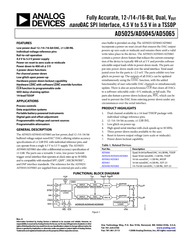 AD5065 Fully Accurate 16-Bit VDAC SPI Interface 2.7 V to 5.5 V in a TSSOP