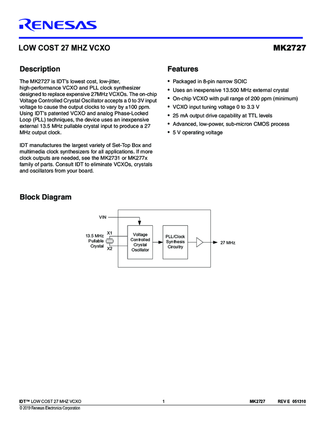 MK2727SLF Low Cost 27MHz VCXO