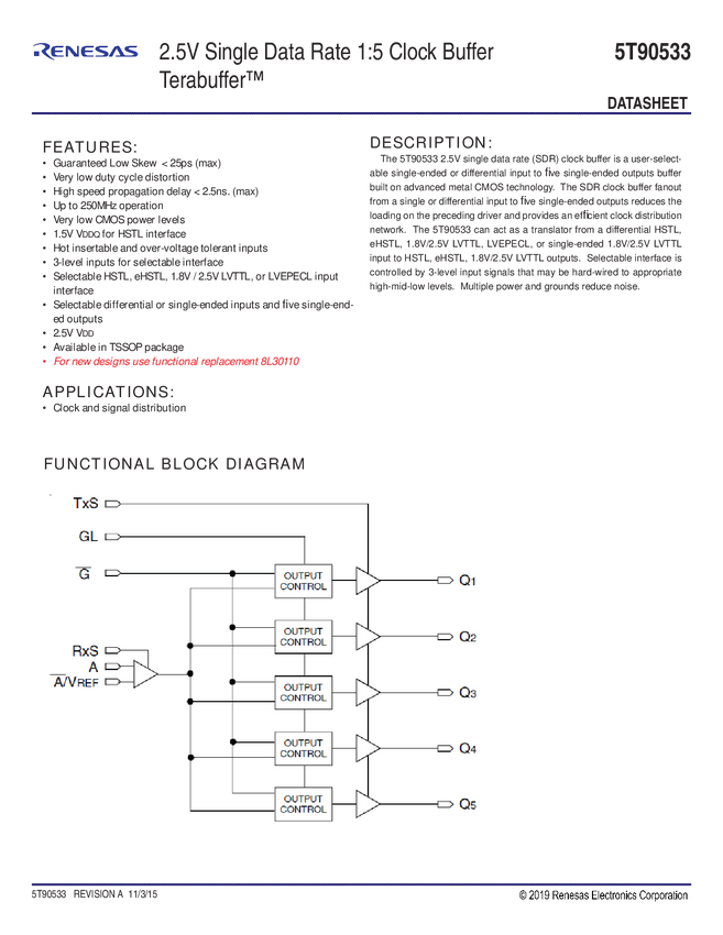 2.5V Single Data Rate 1:5 Clock Buffer Terabuffer™