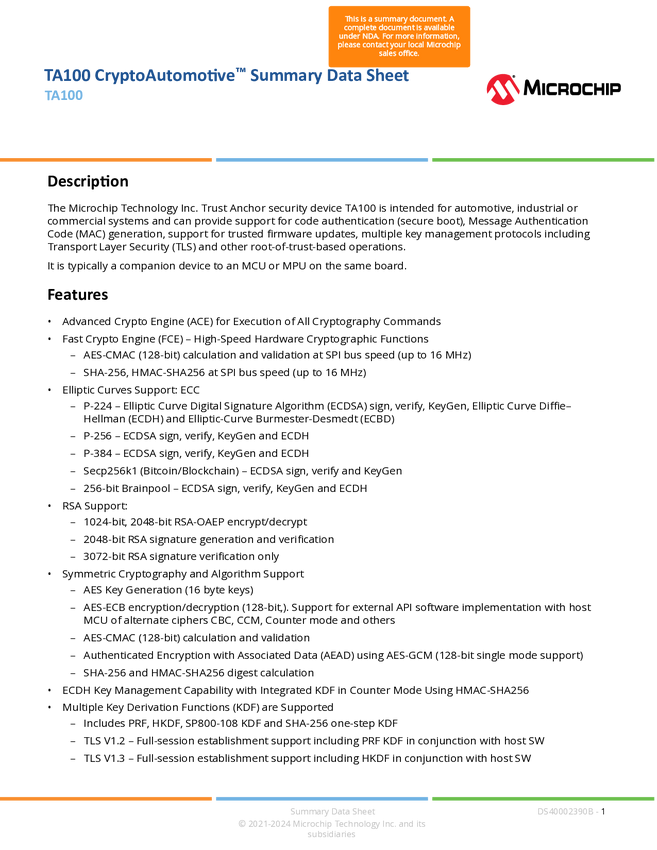 TA100 CryptoAutomotive™ TA100 B6 Summary Data Sheet