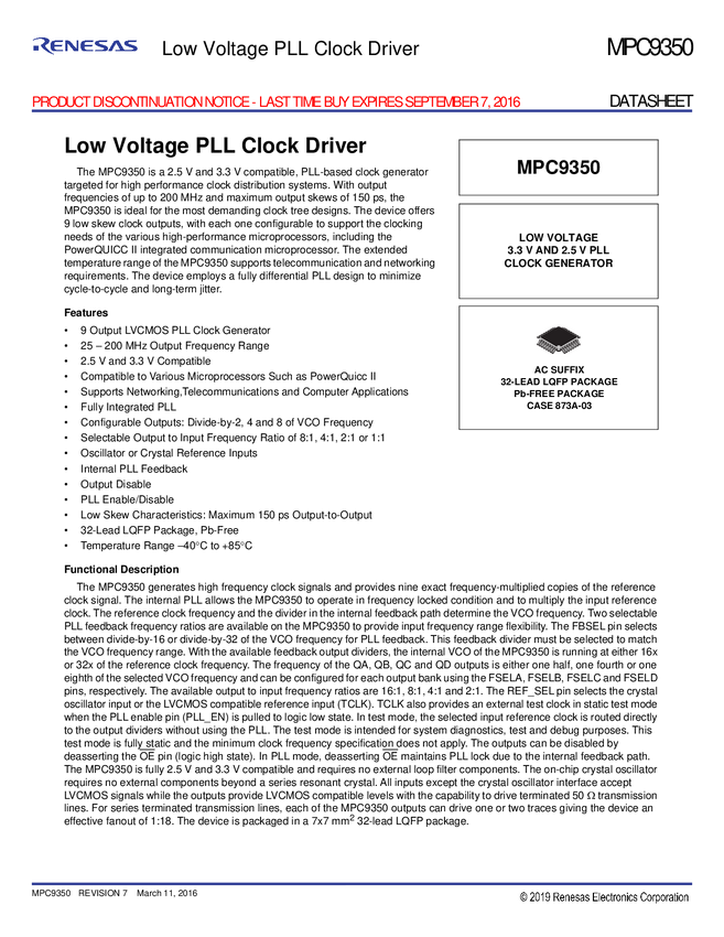 MPC9350AC 1:9 LVCMOS Clock Generator