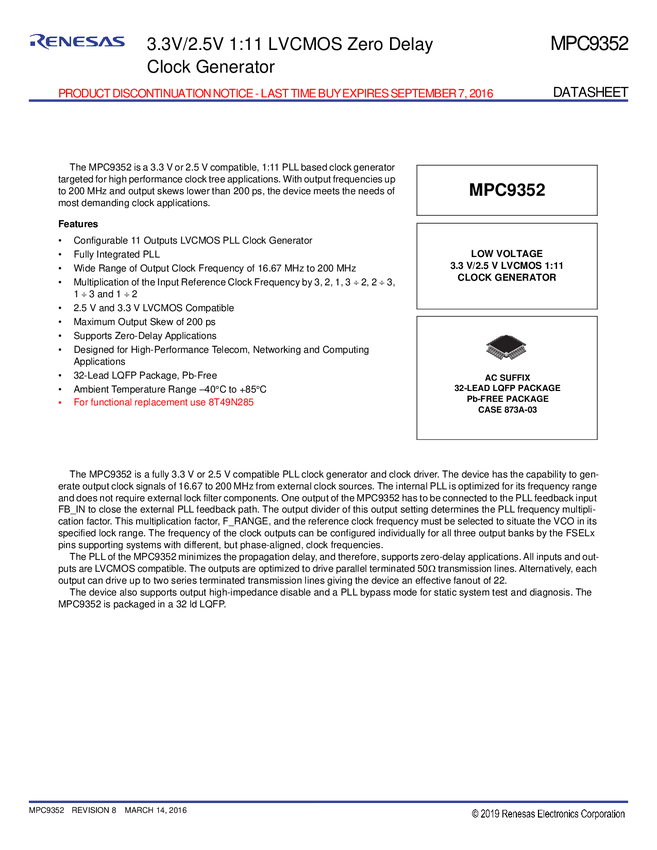 MPC9352AC 1:11 LVCMOS Zero Delay Buffer