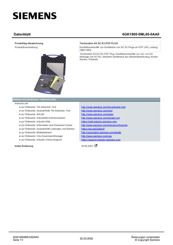 6GK19000ML000AA0 Zestaw końcowy Siemens 6GK1900-0ML00-0AA0 6GK19000ML000AA0