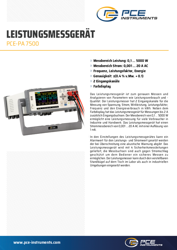 Analizator sieci PCE Instruments Power Analyzer PCE-PA 7500 Pomiary zużycia energii