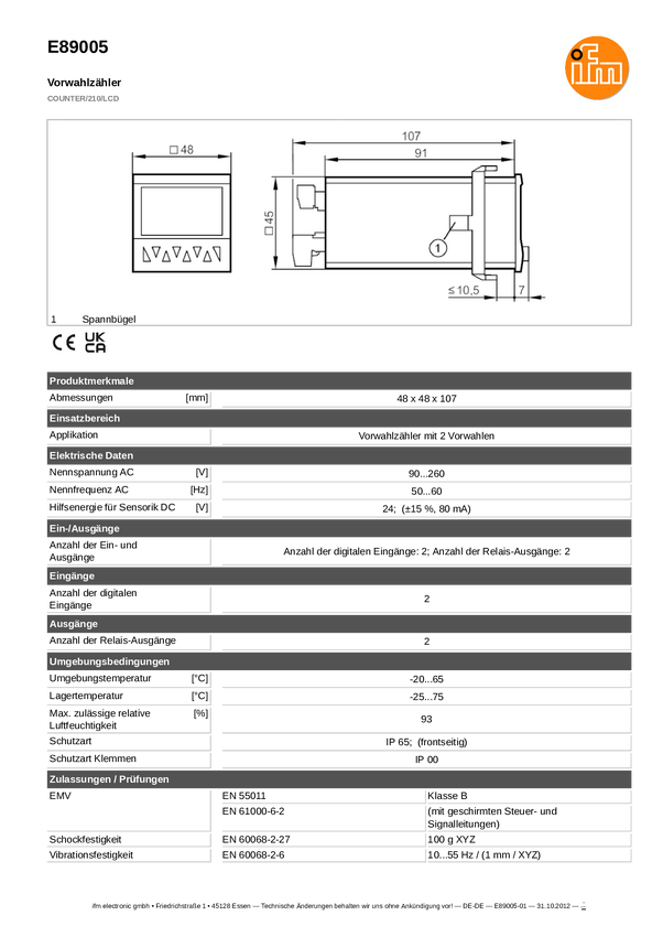 E89005 ifm Electronic E89005 Zaprogramowany licznik