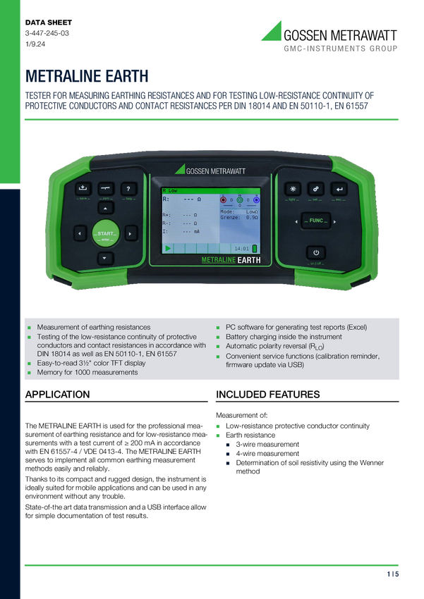 Miernik rezystancji uziemienia Gossen Metrawatt METRALINE Earth M590R