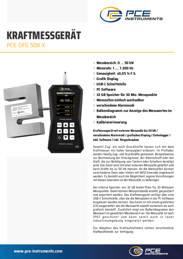 PCE-DFG 50K X Siłomierz, niutonometr PCE Instruments PCE-DFG 50K X