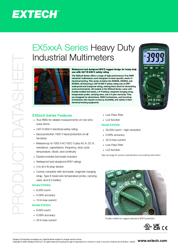 EX530A Multimetr cyfrowy Extech Extech EX530A, CAT IV 600 V