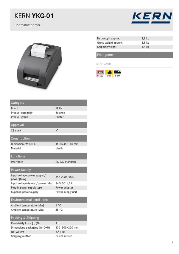 Drukarka igłowa YKG-01 Kern YKG-01 YKG01