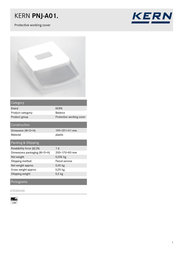 PNJ-A01. Osłona robocza PNJ-A01. Kern PNJ-A01. PNJA01