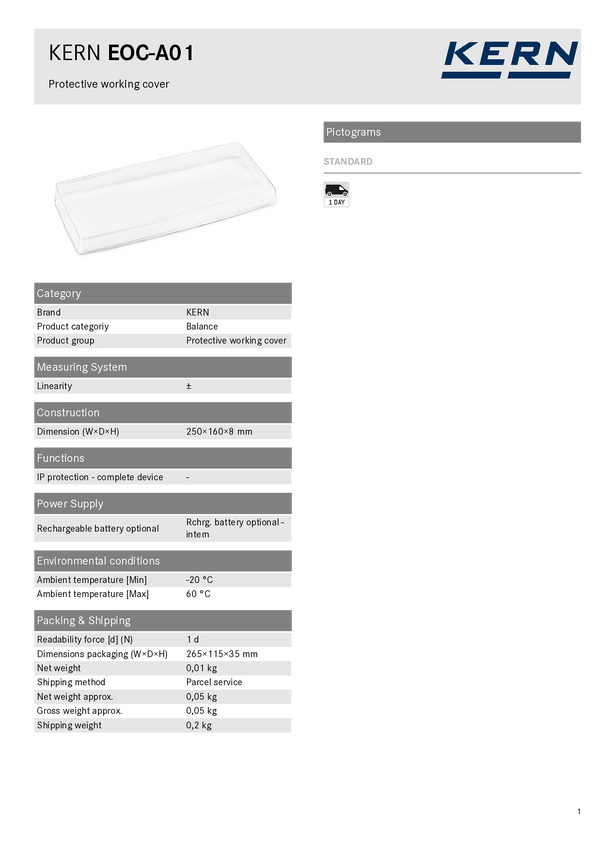 EOC-A01 Osłona robocza EOC-A01 Kern EOC-A01 EOCA01