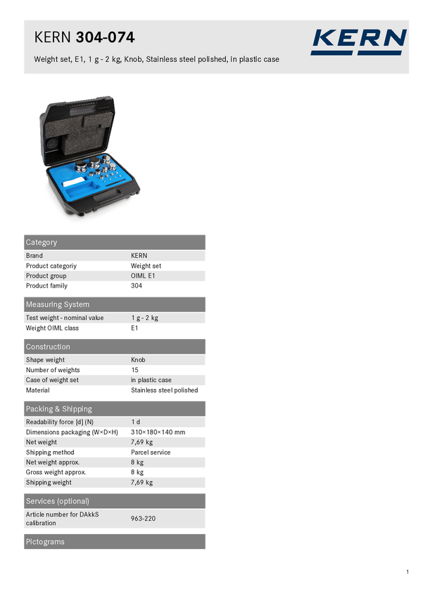 304-074 Odważnik do kalibrowania wag Kern 304074 304-074