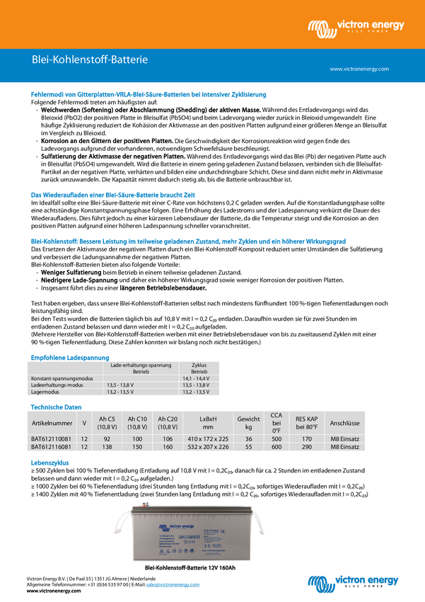 Akumulator ołowiowy Victron Energy Blei Kohlenstoff 12V/100Ah BAT612110081, Blei-Carbon, 12 V, 100 Ah