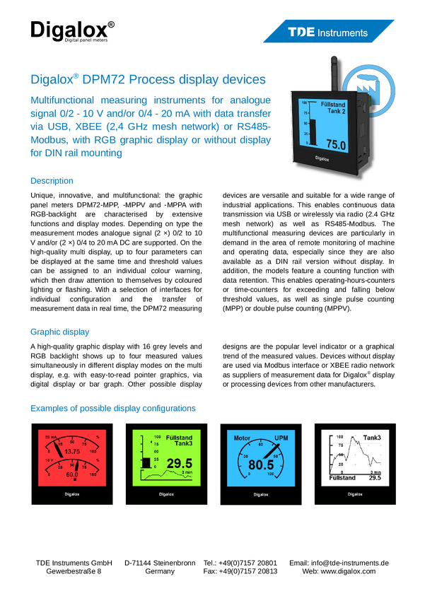 DPM72-MPP-XBEE-DIN TDE Instruments DPM72-MPP-XBEE-DIN Analogowy miernik na szyne DIN