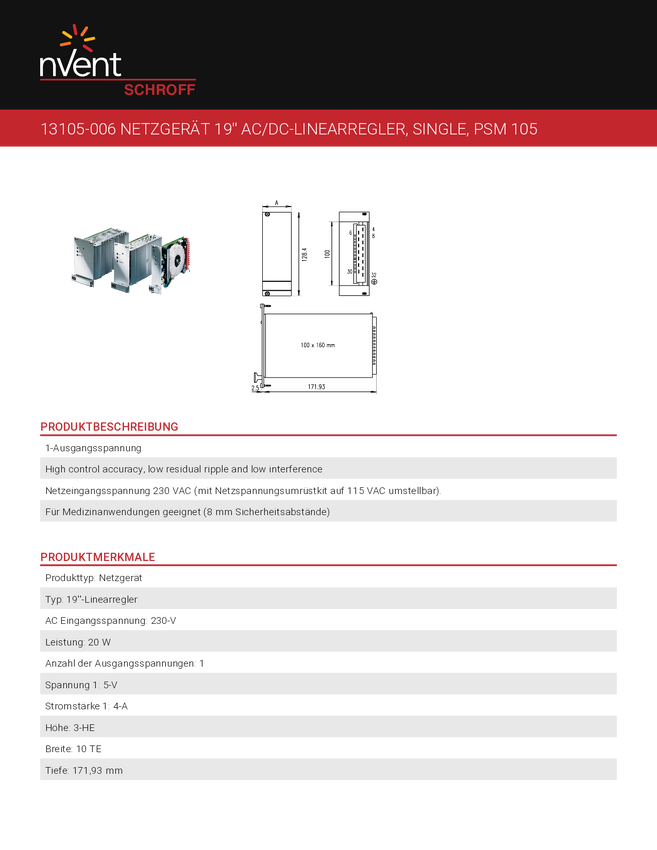 13105006 Zasilacz nVent SCHROFF PSM 105 OVP10HP