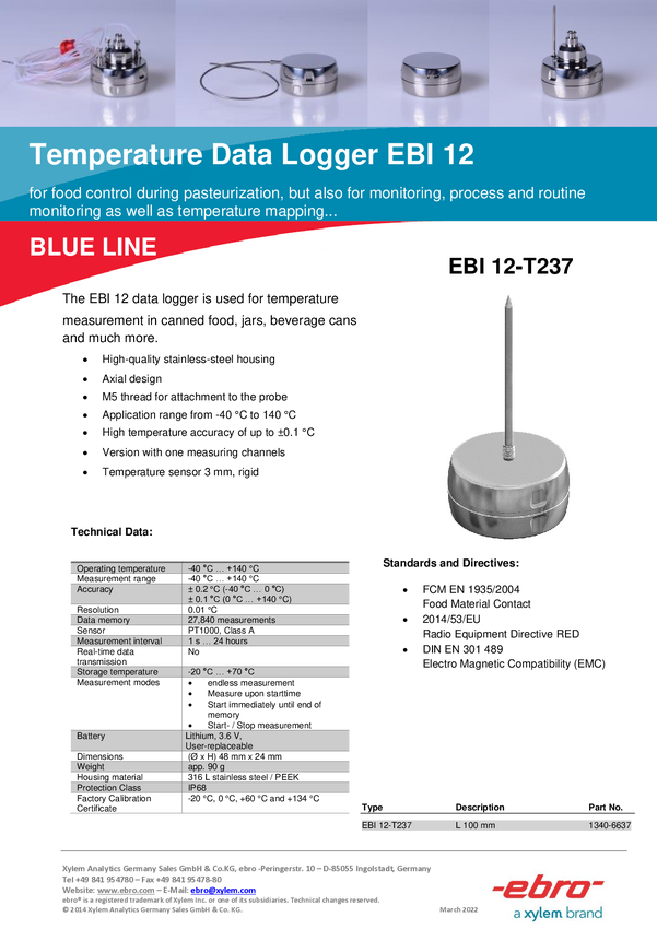 1340-6637 Rejestrator temperatury ebro EBI 12- T237 1340-6637 -40 do +140 °C
