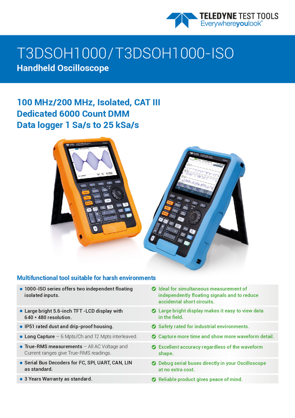 Oscyloskop ręczny Teledyne LeCroy T3DSOH1202-ISO 200 MHz 1 GSa/s