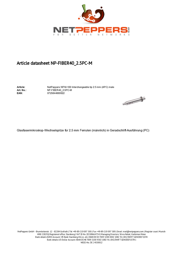 NetPeppers NP-FIBER40_2.5PC-M Wymienna końcówka