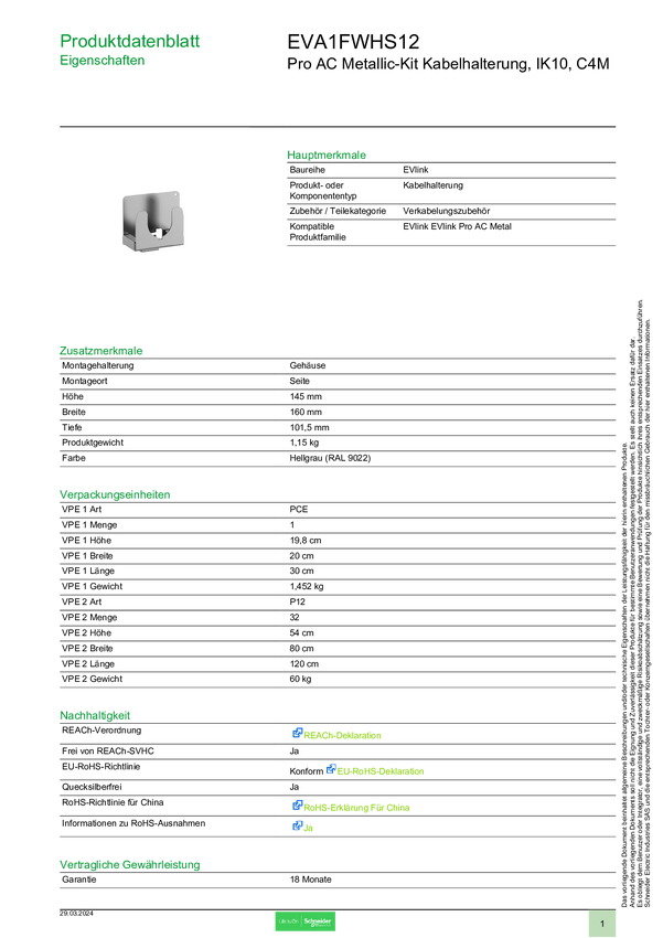 EVA1FWHS12 Uchwyt na kabel ścienny Schneider Electric EVA1FWHS12