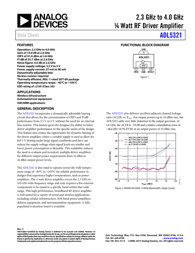 ADL5321: 2.3 ¼ Watt RF Driver Amplifier