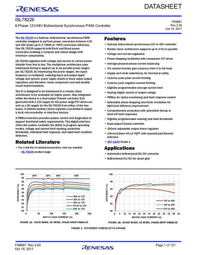 ISL78226ANZ 6-Phase 12V/48V Bidirectional Synchronous PWM Controller