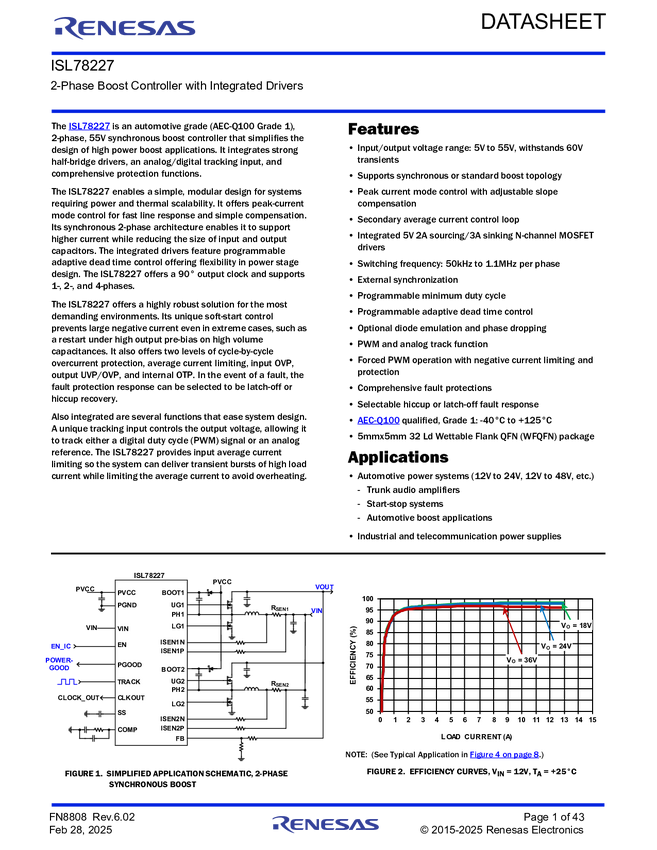 ISL78227ARZ 2-Phase Boost Controller with Integrated Drivers