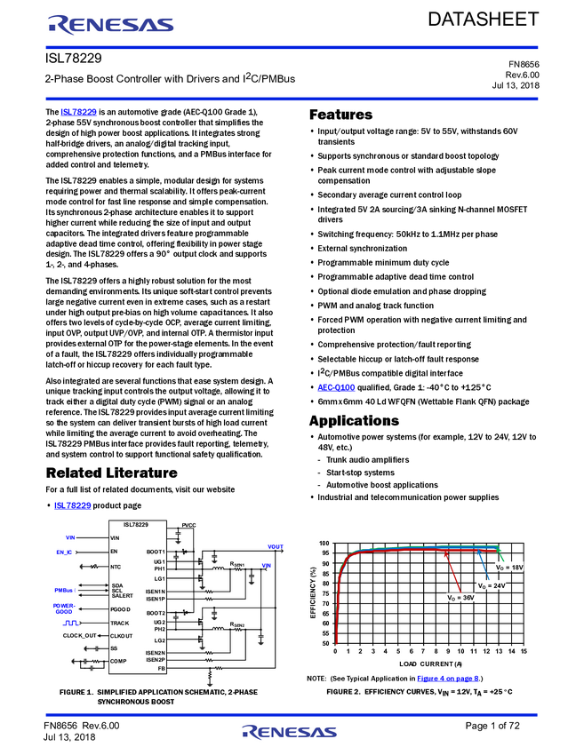 ISL78229ARZ 2-Phase Boost Controller with Drivers and I²C/PMBus™