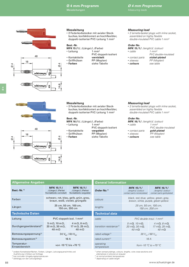 MFK 15 / 1 / 100 / GNGE Schützinger Przewód pomiarowy 100 cm zielono-żółty 1 szt.