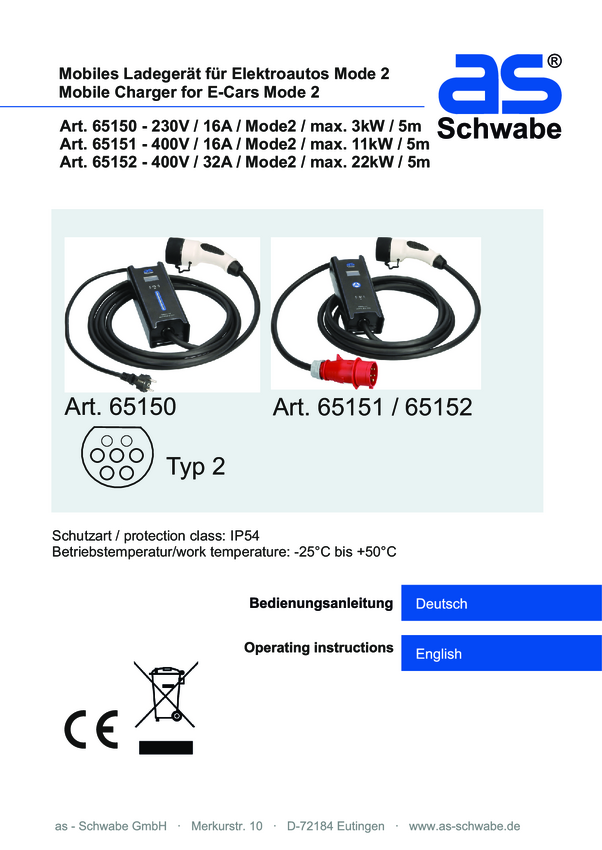65151 Stacja ładowania samochodów elektrycznych AS Schwabe 65151 5 m
