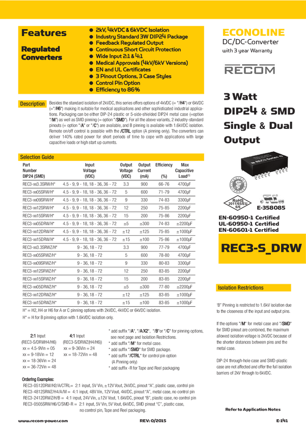 REC3-2415DRW/H4/A RECOM REC3-2415DRW/H4/A Przetwornica DC/DC REC3-2415DRW/H4&...