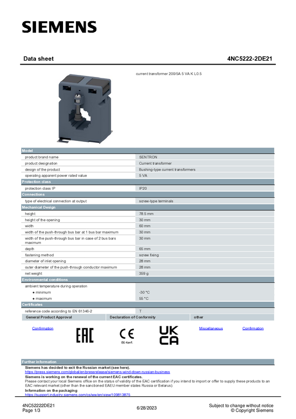 Siemens 4NC5222-2DE21 4NC52222DE21 1 szt.