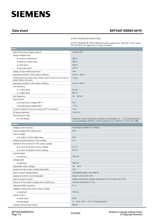 6EP34478SB000AY0 Zasilacz na szynę DIN Siemens 6EP3447-8SB00-0AY0 6EP34478SB000AY0