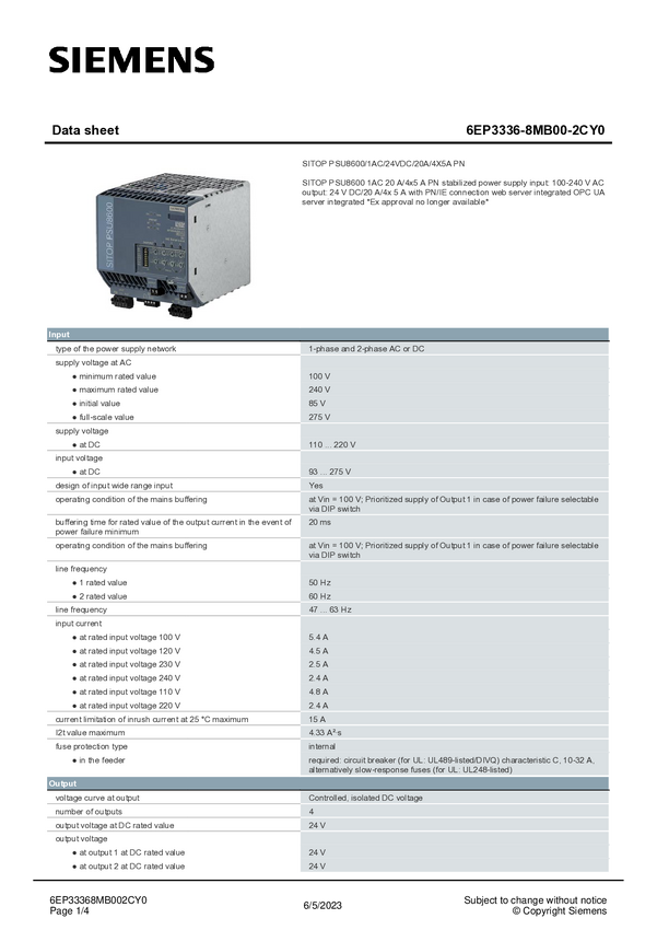 Zasilacz na szynę DIN Siemens 6EP3336-8MB00-2CY0 6EP33368MB002CY0