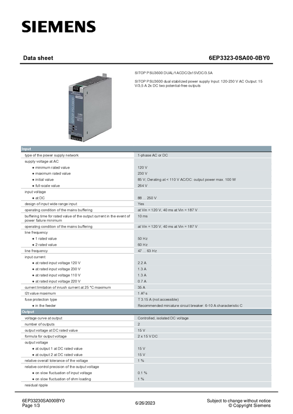 Zasilacz na szynę DIN Siemens 6EP3323-0SA00-0BY0 6EP33230SA000BY0