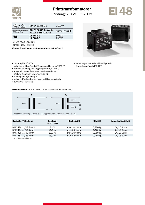 BV EI 481 1184 Transformator BV EI 481 1184 Hahn BV EI 481 1184 N/A N/A
