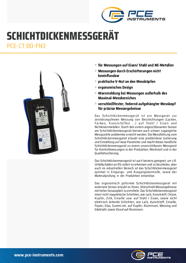 Miernik grubości warstw PCE Instruments PCE-CT 80-FN3