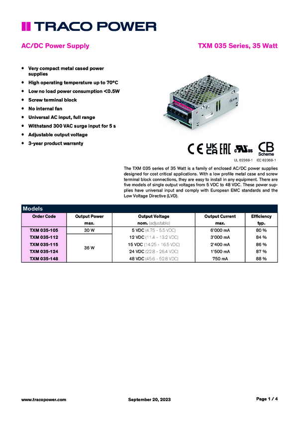 TXM 035-105 Zasilacz TracoPower TXM 035-105 5.5 V/DC 6 A 35 W