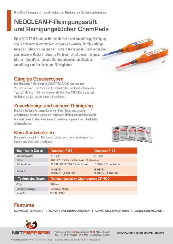NetPeppers NP-FIBER21 Pióro do czyszczenia światłowodów