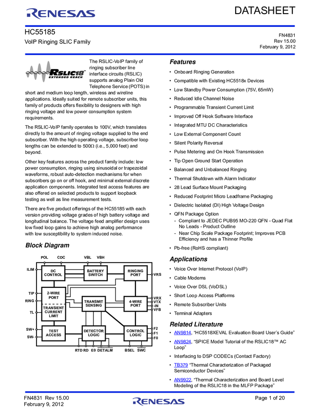 HC55185AIMZ96, HC55185BIMZ, HC55185BIMZ96, HC55185CIMZ, HC55185CIMZ96, HC55185DIMZ, HC55185DIMZ96, HC55185ECMZ, HC55185ECMZ96, HC55185FCMZ, HC55185FCMZ96, HC55185GCMZ, HC55185GIMZ, HC55185