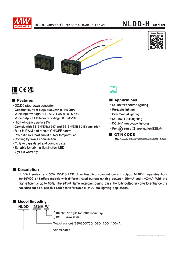 NLDD-700HW MW Mean Well NLDD-700HW Przetwornica DC/DC 6 V 0.7 A Content 1 szt.