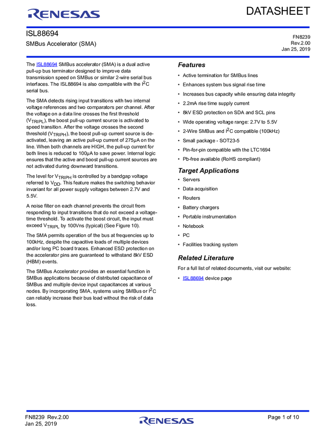 ISL88694IH5Z-TK SMBus Accelerator (SMA)