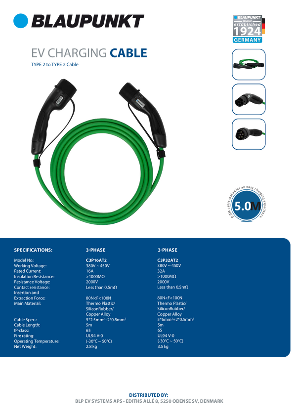 C3P16AT2 Kabel do ładowania samochodów elektrycznych Blaupunkt C3P16AT2 5 m