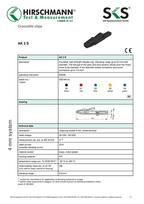 932146102 Zacisk chwytający SKS Hirschmann AK 2 S blau