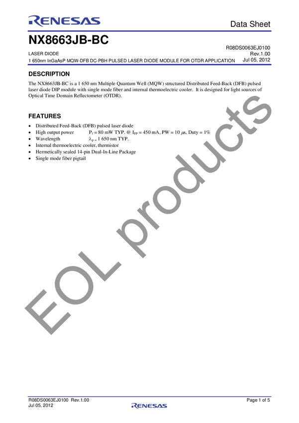 NX8663JB-BC-AZ 650nm InGaAsP MQW-DFB DC-PBH PULSED Laser Diode Module for OTDR Application