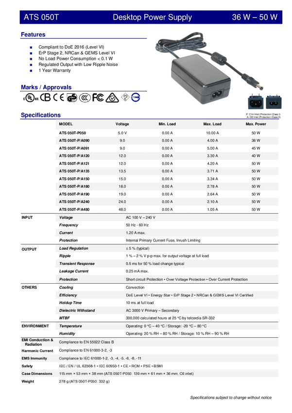 ATS 050T-A090 Zasilacz stałonapięciowy Dehner Elektronik ATS 050T-A090 ATS 050T-A090 4 A...