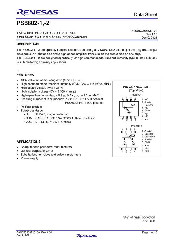 PS8802-2-F3-AX, PS8802-2-V-AX, PS8802-2-V-F3-AX, PS8802-2