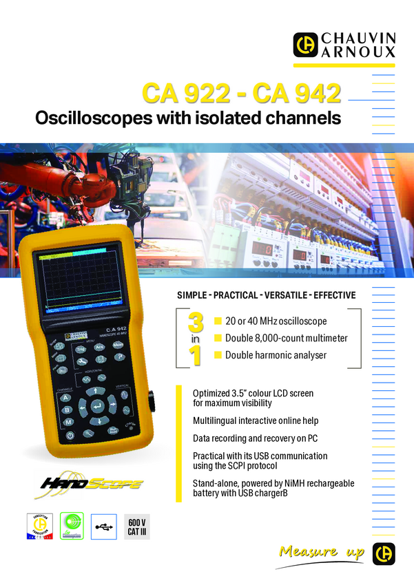P01192200 Oscyloskop ręczny Chauvin Arnoux C.A 922 20 MHz 2 GSa/s