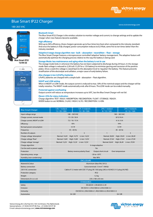 BPC123048002 Ładowarka akumulatorów kwasowo-ołowiowych Victron Energy BPC123048002 12 V...