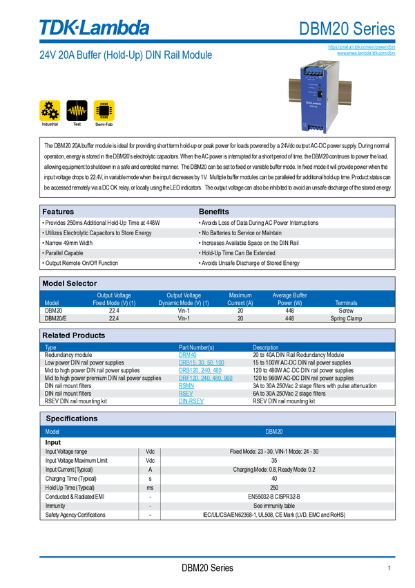 DBM20 Moduł buforowy do montażu na szynie TDK DBM20 DBM20
